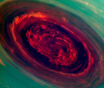 Saturno è uno dei cinque pianeti del sistema solare visibile ad occhio nudo dalla Terra. Gli scienziati hanno da tempo notato che Saturno un pianeta abbastanza ventoso – la velocità del flusso d’aria è di 500 m / s La differenza principale tra un uragano registrato e quelli terrestri è dimensioni enormi e velocità di rotazione incredibilmente elevata. Secondo ricercatori, è iniziato alcuni anni fa. Diametro uragano circa 2000 km, che è circa uguale alla metà dell’Australia. Una velocit� il vento supera i 500 km all’ora. Ma al centro del vortice c’è calma e tranquillità – questa è l’unica somiglianza con gli elementi terreni.