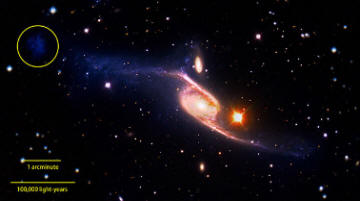 foto da fonti aperte Gli astronomi hanno scoperto la spirale la galassia NGC 6872 nella costellazione di Pavone si rivelò molto più grande di quanto si pensasse in precedenza, ed è ora considerato il più grande tra quelli a spirale galassie. Gli autori della scoperta sono riusciti a trovare vicino al bordo della manica NGC 6872 è una piccola area che si suppone sia galassia satellitare. NGC 6872 è cinque volte più lungo la lunghezza della nostra Via Lattea nativa ed è 522 mila anni luce.