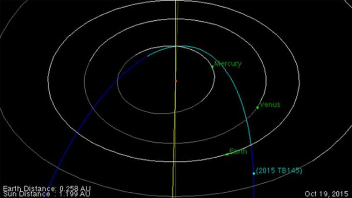 2015 TB145 Astroid Speed è di trentacinque chilometri al secondo, passerà a una distanza minima dalla Terra a 15 ore 14 minuti GMT il 31 ottobre 2015. Secondo gli esperti l’agenzia aerospaziale americana nasa che ha scoperto questo oggetto spaziale due settimane fa, per la Terra non lo è non rappresenta alcun pericolo, tuttavia potrebbe potenzialmente cambiare la tua traiettoria, avvicinati bruscamente al nostro pianeta e persino cadi La luna.