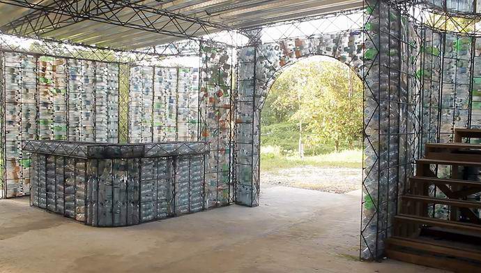 Ci vollero più di diecimila per costruire la prima casa bottiglie di polietilene tereftalato, che di solito vendono acqua minerale, cola, succo di frutta e altre bevande analcoliche. per l’edificio a due piani che è in costruzione ora sarà richiesto in comune difficoltà venticinquemila bottiglie. Telai per case in acciaio tetti – realizzati in metallo. I tubi si posano facilmente nelle pareti e cavi elettrici.
