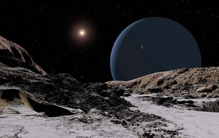 E infine, sul Plutone senza vita, che è di sei miliardi a chilometri dal Sole, la stella sembra un puntino minuscolo, luminosit� che è 1.600 volte inferiore alla luminosità del sole sulla Terra. E ancora meno, anche questa stella è quasi trecento volte più luminosa della nostra luna.