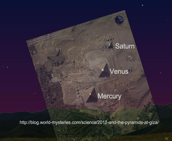 Allineamento planetario che si terrà il 3 dicembre 2012 allineato con precisione alle piramidi di Giza. Cielo notturno di Giza, Egitto 3 dicembre 2012, ora locale … un’ora prima alba rispetto alle piramidi di Giza. immagine realizzato utilizzando il programma per computer Starry Night Pro (come lo stesso tipo di pianeti può essere ottenuto usando qualsiasi altro programma astronomia, ad esempio Stellarium). Immagine post per Planetary Allineamento il 3 dicembre 2012 confermato