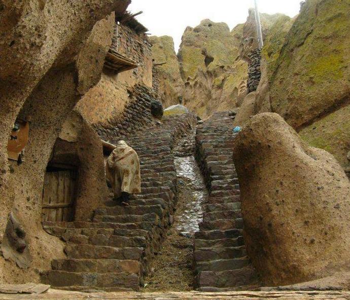 Nel nord-ovest dell’Iran, nella provincia dell’Azerbaigian orientale, come volte tra le città di Tibrez e Osku c’è un villaggio unico Kandovan, dove circa un migliaio di persone non vivono in case ordinarie, ma grotte di pietra. E questo “alveare” (ecco come si traduce nome del villaggio) esiste qui da più di settecento anni.