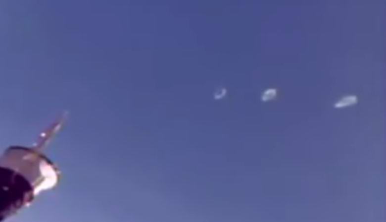 I fratelli Ufologa Brett e Blake Cousins guardarono dal vivo webcam installate a bordo dello spazio internazionale stazione, e improvvisamente notò come qualcosa cadde nell’obiettivo strano. Tre misteriose anomalie che ricordano un aspetto gigantesco anelli di fumo bianco volarono verso la Terra.