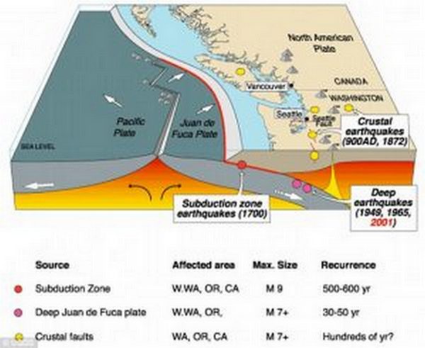 La zona di subduzione in cascata, dicono gli scienziati, non genera gravi, in qualche modo distruttivi, terremoti dalla fine XVI secolo, quindi lì per tre secoli si è già accumulata una forte pressione, grazie alla quale la piastra di Juan de Fuca sempre più va sotto la terraferma americana. Conti per Un’affermazione di fiducia del 50 percento, dicono i sismologi, che in mega-terremoti possono verificarsi in questo momento in qualsiasi momento, e con una potenza massima di 9 punti sulla scala Richter.