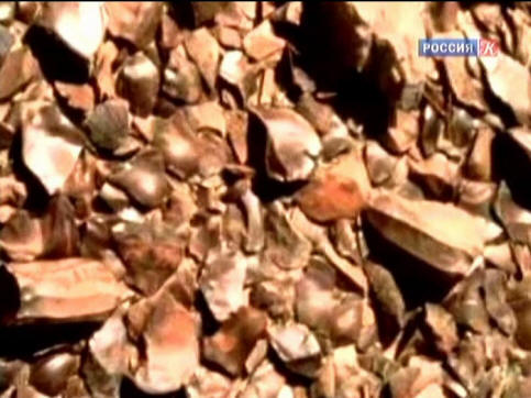 Tra le rovine sono sparsi pezzi di argilla fusi e altro minerali, che un tempo si indurivano rapidamente. Analisi del campione, condotto presso l’Università di Roma e nel laboratorio del National Il Consiglio per la Ricerca in Italia ha mostrato: il riflusso è avvenuto a temperatura di 1400-1500 gradi! Tale temperatura in quei giorni potrebbe essere ottenuto nella fornace di un’officina metallurgica, ma in nessun modo non in una vasta area aperta .. “[D. Davenport, E. Vincenti]
