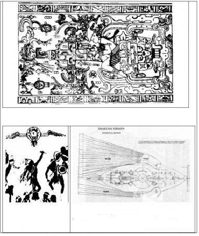 Schemi dell’immagine di aerei su monumenti antichi cultura, incluso il disegno di vimana, copiato dall’antico Trattato vedico “Vimanika sastra”.