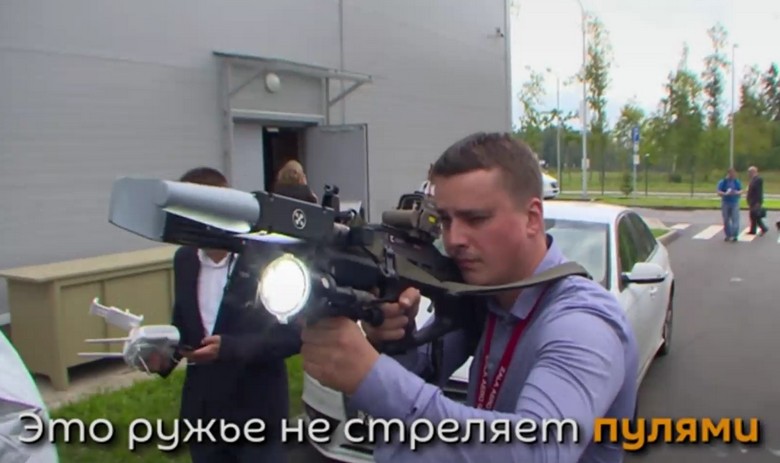 Questa “pistola” non spara proiettili, tuttavia è in grado di farlo facilmente sopprimere segnali Wi-Fi, comunicazioni mobili, sopprimere GPS, GLONASS, la maggior parte dei veicoli aerei senza pilota “atterranti” (di atterraggio). Nome a nuovo “Le armi leggere di Kalashnikov” – REX-1, è equipaggiato mirino collimatore, presa tattica e necessario allegati. Questo dispositivo, secondo gli sviluppatori, sarà molto efficace nella lotta contro l’esplosivo improvvisato dispositivi, “teppismo nel cielo”, per non parlare dei più seri compiti militari.
