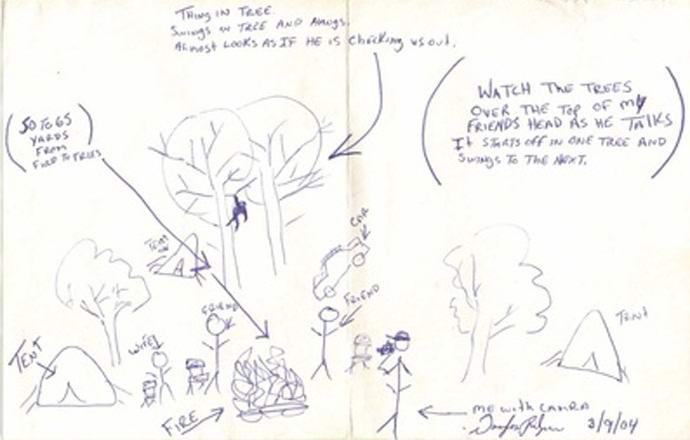 Doug e sua moglie hanno trovato una creatura misteriosa solo sul rullo dopo 6 anni. Nell’autunno del 2003, la moglie dell’uomo stava recensendo vecchie registrazioni di una coppia in vacanza e inaspettatamente notò la sagoma di un animale che dondolava su un albero. Dag così si interessò a trovare sua moglie che iniziò a inviare video professionisti della ricerca yeti. Per registrare l’americano ha applicato un piccolo schizzo (vedi sopra), consentendo agli spettatori di navigare meglio.