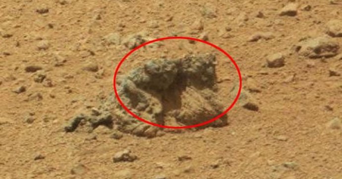 Gli scienziati della NASA hanno scoperto che l’immagine mostra pietre ordinarie, piegato dalla natura a somiglianza di alcune figure. Esatto anche la natura a volte ci sorprende con bizzarre nuvole nel cielo, che noi, tuttavia, non consideriamo né i fantasmi, né tanto meno vivi o creature morte.