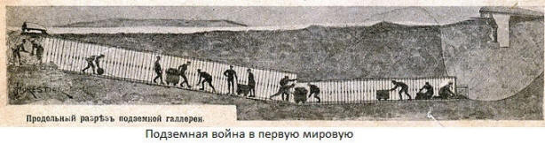 Un ritorno alle tradizioni della guerra sotterranea in una situazione del genere Era del tutto naturale. Nel 1916, gli inglesi organizzarono 33 compagnie di tunnel che contano 25 mila persone. Scavando come sotto il metodo per spezzare la linea di difesa del nemico era usato anche in russo esercito e in tedesco.