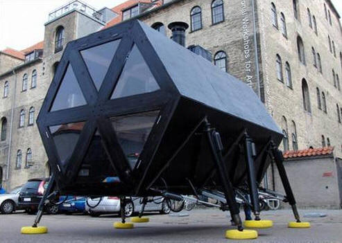 Lo studio di design danese N55 ha creato un fantastico casa indipendente modulare che può passeggiare per la città. La casa pedonale è composta da un modulo base dotato di impianto solare pannelli e piccoli mulini a vento da generare energia.