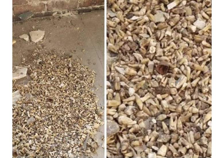 Almeno un migliaio di zanne, incisivi, molari e premolari erano murata al secondo piano della struttura.