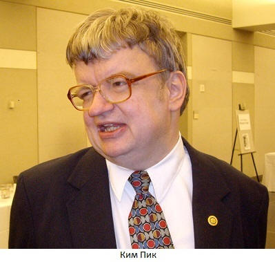 Nel 1984, Kim Peak incontrò per caso un americano Il romanziere Barry Morrow. Successivamente Morrow ha scritto la sceneggiatura Film di Rain Man, prototipo del personaggio principale Raymond Bebbit era Kim Peak. Il genio sciocco Daniel Tammet davanti a la calcolatrice moltiplica i numeri di 4 cifre nella mente, i quadrati e cubo, aggiunge, divide, estrae le radici e divide 13 per 97 s precisione a 100 caratteri. Ottima conoscenza di 11 lingue. che per dimostrare le sue capacità linguistiche, uno sconosciuto ha iniziato a insegnare lui precedentemente islandese. Dopo 7 giorni (questo non è un errore di battitura, lo è sette giorni!) ha rilasciato interviste dal vivo in islandese la lingua.