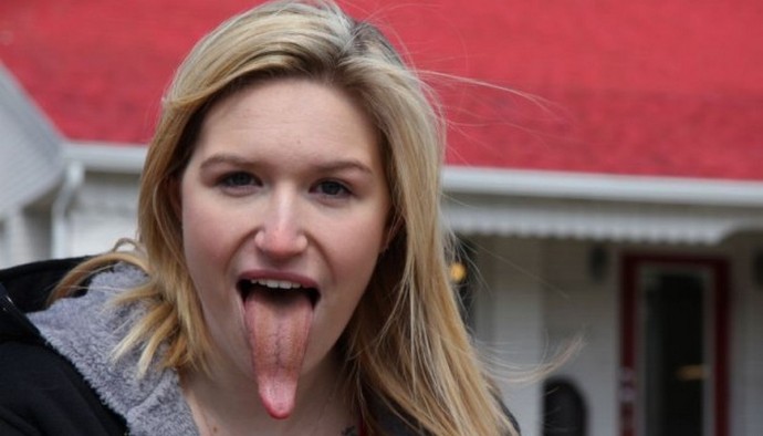 La lunghezza della sua lingua supera i dieci centimetri, il che consente per una ragazza, ad esempio, è facile portarli non solo al naso, il che può dimostrare a molte persone del pianeta, ma anche alla vista, a mento ai gomiti e altre parti del corpo.