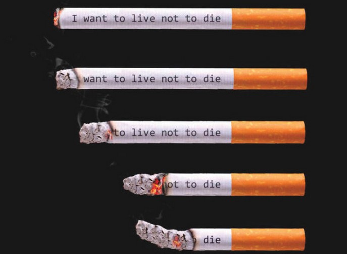 Sigarette che, mentre vengono fumate, cambiano l’iscrizione “Voglio vivere, non morire”, in breve: “morire”. Ne varrebbe la pena le sigarette forniscono qualcosa di simile …