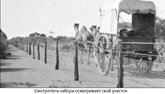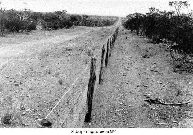 Nel 1907 fu costruita una recinzione. Tre linee di difesa (lunghezza totale 3253 km.) Attraversato il continente da sud a nord. Lungo la recinzione ha aperto una strada sterrata su cui pattugliavano i dipendenti servizio appositamente creato. La descrizione del lavoro recita: la recinzione socchiuse gli occhi – si raddrizzò, trovò uno scavo – andò a dormire, vide un coniglio – uccidilo senza pietà.