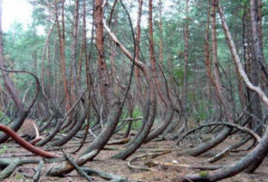 Quasi tutti hanno tronchi curvi, e questo il fenomeno colpisce alberi di diverse specie. In questo caso, il confine tra l’area anormale e la foresta ordinaria sono abbastanza chiare. Dopo aver esaminato diversi alberi segati, i ricercatori hanno scoperto che il nucleo del loro tronco è notevolmente spostato rispetto al suo centro. Le misurazioni dello sfondo elettromagnetico non hanno mostrato deviazioni dalla norma.
