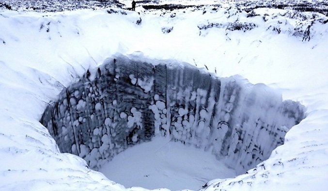 A proposito, il primo di questi crateri è stato registrato nel 2013, è stato poi scoperto da un elicottero. Si noti che alcuni studiosi sono propensi al fatto che la causa della formazione di tali fallimenti in Yamal divenne non metano, ma l’accumulo di ghiaccio sotterraneo, che in connessione con il riscaldamento globale ha iniziato a sciogliersi.