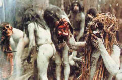 La vacanza si conclude con un rituale molto importante: una cerimonia Endocannibalismo. Le donne dipinte in nero portano cestini di ossa di parenti defunti e uomini – tronchi d’albero quali ossa saranno schiacciate per molte ore in poco profonde in polvere. I selvaggi credono che l’anima del defunto vagherà dentro nella giungla, se i parenti non la liberano dai legami terreni, mangiare questa polvere d’ossa. È mescolato con la banana pappa, messa in speciale kulchek di foglie e parenti eseguire un rituale di assorbimento di questa terribile miscela. Solo con l’ultimo un pezzo di esso, l’anima dei morti andrà nell’aldilà.