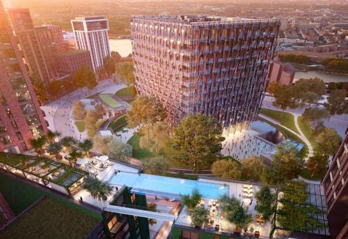 Sky Pool (piscina celeste) si inserisce organicamente nel complesso residenziale Embassy Gardens ordinato da Ballymore. Ha costruito sarà la società di costruzioni Arup nella zona dei Nove Elmi vicino al centro Di Londra. Questo progetto creativo è stato creato da Eckersley O’Callaghan, noto per il suo magnifico design sviluppi per molti negozi Apple – quasi dentro in tutto il mondo.