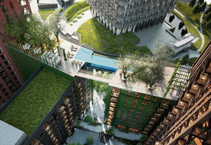 Il problema principale nella costruzione di una piscina tra le case sta nel fatto che i grattacieli non oscillano in modo sincrono. Pertanto, è necessario prevedere un sistema speciale per il fissaggio della struttura con l’aiuto di cuscinetti speciali che “smorzano” movimento asincrono delle pareti. Il pool sarà commissionato nel 2019 anno.