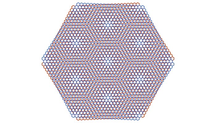 La trappola del MIT era una struttura in grafene nota come super reticolo moiré, in cui due griglie bidimensionali si sovrappongono con una leggera torsione e compaiono modelli regolari più grandi, come mostrato nell'immagine sopra.
