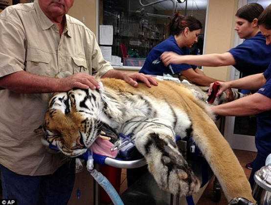 Foto da fonti aperte Nonostante le tigri siano conosciute come formidabili predatori, i medici hanno detto che Tai è stato meraviglioso il paziente. Dr. Don Woodman della Northwood Veterinary Clinic (Animal Hospital Northwood): “Questa tigre è speciale, è molto buona e tesoro. Non è affatto quello che la gente immaginava questi animali. È una persona e solo un gatto incredibilmente buono. ”