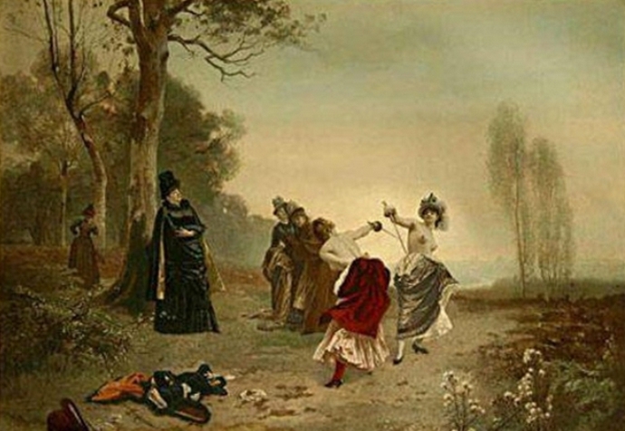 Ecco perché il duello, quando erano ordinari e persino popolari, anche si è verificato non solo tra gli uomini, con le armi in mano hanno combattuto l’un l’altro e le donne. E anche i duelli delle donne sembravano i contemporanei sono più crudeli degli uomini.