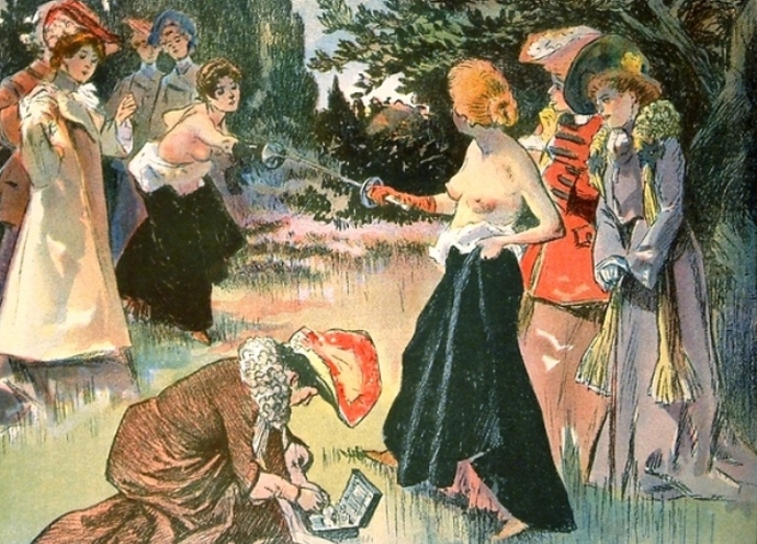 Il duello di solito avveniva in luoghi chiusi o appartati, le donne hanno certamente combattuto in topless, poiché si credeva che il vestito non lo fosse limita solo il movimento, ma minaccia anche di colpire i pezzi importa nella ferita, che per qualche motivo ha spaventato le persone in quel momento.