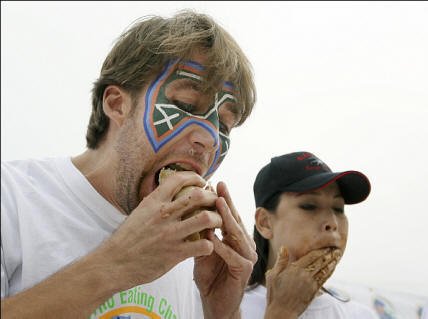 Foto da open source Takeru Kobayashi, minorenne atletico (foto Metro News). Nel 2006, il gastroenterologo David Metz della Pennsylvania L’Università (USA) ha trovato il tempo di studiare lo stomaco normale concorrente di tiro di nome Tim Janus (numero il terzo nei fogli di grado, pseudonimo – Eater X) e stomaco persona normale dopo essersi seduti e mangiato 12 minuti hot dog. A causa dell’elevato contenuto di bario in questo prodotto lo scienziato è stato in grado di osservare il comportamento dello stomaco in un fluoroscopio. Sig. Metz voleva mettere alla prova il presupposto che i nobili mangiatori hanno lo stomaco libera spazio più velocemente aprendo la porta sul retro dell’intestino tenue. Si è scoperto che era vero il contrario: dopo due ore, lo stomaco dell’Eater-X si è sbarazzato di solo un quarto di ciò che è stato mangiato, mentre lo stomaco non l’ha fatto una persona straordinaria era vuota del 75%. Da qualche parte dopo il settimo l’ultimo hot dog si è lamentato un po ‘di più, e si sarebbe sentito male, sebbene la fluoroscopia mostrasse che lo stomaco era solo un po ‘allungato più grande della dimensione iniziale. Il suo rivale, nel frattempo, è a suo agio deglutì 36 panini, per comodità, mettendoli in bocca a coppie e non prestando attenzione al fatto che lo stomaco risuonava molto, prendendo quasi l’intera cavità addominale superiore. Neanche lui si sentiva dolore, né nausea, né sazietà. È possibile dire questo il risultato di un eccesso di cibo regolare? O è nato così? bene interrogando il tamburo spolina, il sig. Metz ha concluso che In questo caso, la natura viene prima di tutto. In generale, lo stomaco queste persone non sono più grandi del solito, ma lui è fantastico la capacità di rilassarsi senza farsi del male. Allo stesso tempo Non si può non ammettere che questo “dono” è solo l’inizio. Il partecipante professionale a tali concorsi è Eric Denmark (Eric Red, settimo stomaco degli Stati Uniti) ritiene che senza allenamento quotidiano dispensare, altrimenti il corpo semplicemente non sarà in grado di spingere fuori del possibile. Ma perché i meccanismi di difesa sono silenziosi? Perché no? rigurgito? Eric Red ammette che in realtà … beh … deglutisci di nuovo, e basta. Devo dirlo su questi contesta il rigurgito è considerato una sconfitta – veloce, cibo salito indietro. Queste persone si allenano sull’acqua. All’inizio di una carriera, ricorda Red, riusciva a malapena a bere più di 4 litri (ciao, dottore Kay Aberg, avevi ragione), e ora in grado di affrontare il petto 9 litri in posizione seduta. Questo test non è così tanto fisiologico. (lo stomaco si allunga gradualmente), quanto psicologico: è necessario abituati alla sensazione rabelaisiana. È facile smettere dice il signor Danimarca, è molto più difficile riuscire a continuare. Ti prego, non seguire questo esempio. Preparato da Nuovi materiali scientifici.