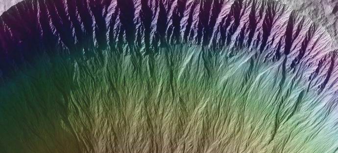 I ricercatori hanno trovato nelle immagini della caratteristica del cratere di origine sollievo per i burroni, che scorrevano chiaramente corsi d’acqua o bagnati terreno contenente oltre il sessanta per cento della massa d’acqua. È possibile che l’umidità portata qui dalle nuvole dai poli e loro cadde in queste latitudini medie sotto forma di pioggia ordinaria.