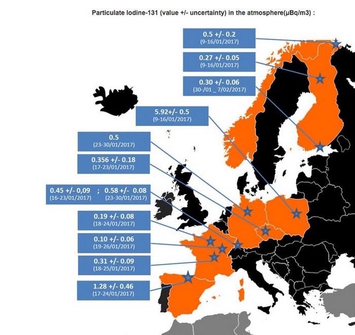 Ricercatori progressisti affermano che approssimativamente metà gennaio di quest’anno, si è verificata un’esplosione in Europa (o incidente simile) a seguito del quale nei paesi “settentrionali” è stato registrato uno sfondo fortemente aumentato di iodio-131 radioattivo. Allo stesso tempo informazioni su questo in qualche modo non sono state divulgate ai media, il che è molto anche strano.