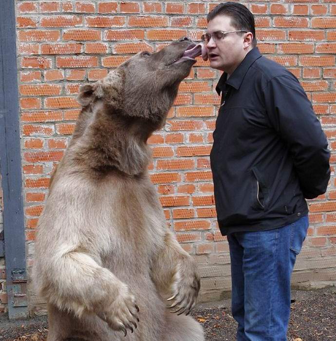 In cattività, gli orsi bruni, di regola, vivono per circa mezzo secolo, altrimenti e altro ancora, così Stepa, in senso figurato, ha tutta la sua vita davanti. L’orso di due metri è molto giocoso e divertente. Lui può prendere la palla, ama scherzare con Yuri come uno scherzo e adora quando pettinare. Preferisce domare un bambino proprio dietro tavolo con i loro padroni. Fortunatamente, non ci sono bambini in casa.