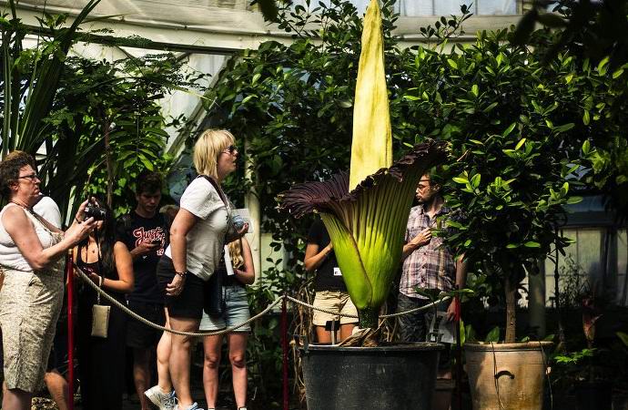 Titan Arum, uno dei fiori più grandi su Terra, recentemente fiorita nella serra principale di Gand Università in Belgio. L’altezza della pianta è di circa due metri e la massa supera i diciotto chilogrammi. Inoltre, in esemplari di tre metri che pesano di più si trovano allo stato brado quintale.