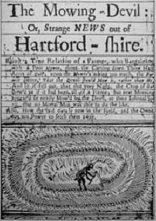 Incisione datata 22 agosto 1678 illustra la leggenda. sul diavolo mietitore. Raffigura un oggetto luminoso sullo sfondo della notte cielo sopra campi di avena nella contea inglese dell’Hertfordshire. Il mattino seguente, alcuni contadini trovarono un campo ben falciato. Trama simile al raccolto.
