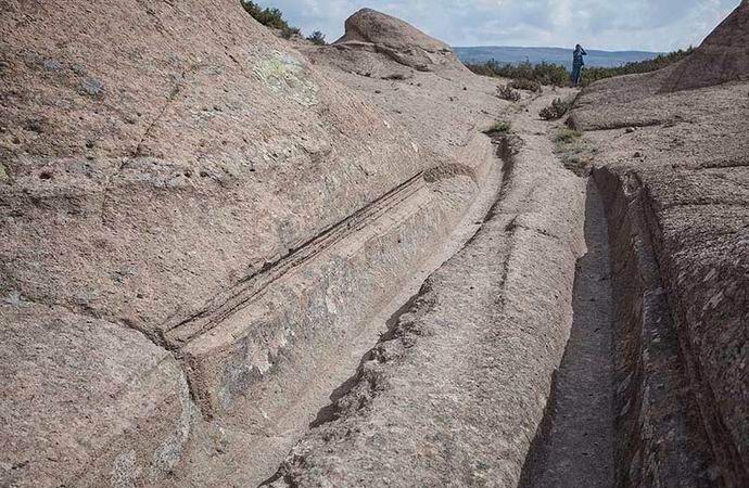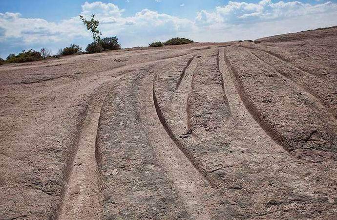 È un solco di pietra con stretto e tortuoso fossati paralleli che ricordano i binari. travolgendo la maggior parte di questi percorsi, per qualche ragione sconosciuta, sono diretti verso l’acqua. Non si sa anche chi abbia scavato queste meravigliose strade di pietra. Gli archeologi calcolano la loro età di diversi millenni e si noti che una rete di fossati simili è disponibile a Malta.