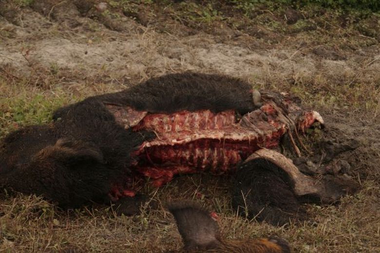 Mia moglie ed io siamo rimasti colpiti da un’altra circostanza: chi è questo? riuscì a catturare e uccidere due cinghiali contemporaneamente, mettendo accanto a loro. Supporre che i cinghiali siano morti qui non è affatto si è scoperto: gli animali sono stati abilmente sventrati e lanciati, cioè carne il loro “misterioso chirurgo” non era chiaramente richiesto …