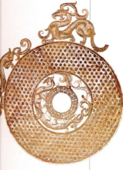 Disc jade dal bi. Provincia di Henan. Cina. Seppellendo bi posto sotto il retro del defunto