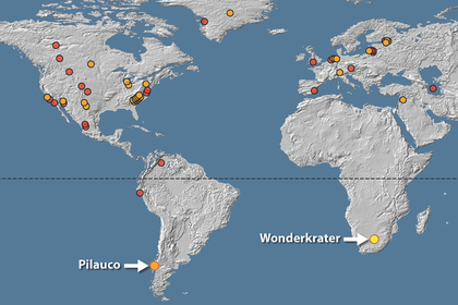 Dai depositi di torba nella provincia sudafricana di Limpopo campioni di roccia sono stati estratti e studiati a fondo dagli scienziati. il i campioni hanno rivelato concentrazioni incredibilmente elevate di platino, spesso trovato nei corpi cosmici. Questo, dicono i ricercatori, è un argomento abbastanza forte che grande un oggetto spaziale (un asteroide o una cometa) si è scontrato con la Terra. Presumibilmente un corpo celeste è caduto 12,8 anni fa nel Nord Groenlandia, dove gli scienziati hanno scoperto un cratere con un diametro di 31 km.