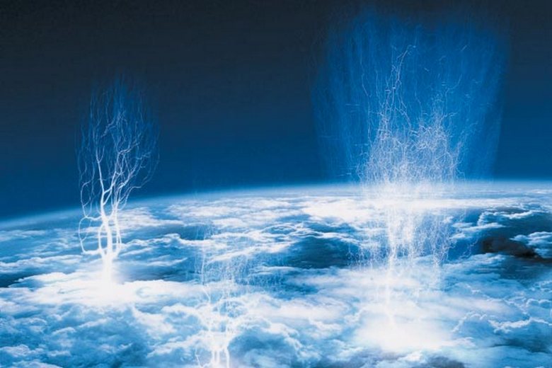 Nel 1989 furono scoperti gli sprite: quasi gli stessi fulmini, solo ad un’altitudine di 70-80 chilometri sopra la superficie della terra. I getti giganti (un tipo di sprite) raggiungono del tutto l’altitudine 90 chilometri di distanza. Inoltre, questi fulmini cosmici (“fulmini viceversa “, battendo nello spazio) sono associati a nuvole temporalesche. Ma come?