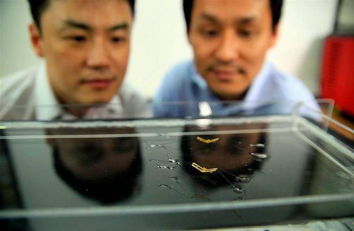 Un gruppo di robotica dell’Università di Seoul sotto sotto la guida del professor Kyuchin Cho, dopo aver attentamente studiato la struttura e il comportamento dei cacciatori d’acqua, ha creato robot in miniatura di cui sono capaci scivola lungo la superficie dell’acqua proprio come se fosse incredibile insetti. Secondo i ricercatori, ne sono semplicemente affascinati piccole creature. “Credimi, ma per creare un robot del genere dove più interessante di un cane o un uccello robotico. Gli strider d’acqua sono fantastici. Ecco perché siamo giunti a una decisione riprodurre il loro meccanismo di movimento unico in dispositivo robotico “, ha detto Cho al coreano ai giornalisti.