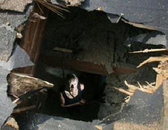 Sentendo l’incredibile potere del ruggito, la donna andò a vedere cosa caso, e vide pezzi di ghiaccio distesi sul pavimento del bagno. Nel soffitto e un enorme foro passante si apriva sul tetto della casa. Ispettore di polizia Paul Hume, che indagò su questo incidente, affermò che la banchisa era chiaramente caduto da una grande altezza. Tuttavia nessun aereo in questo momento in non c’era aria.