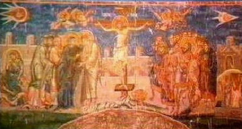 Lungo la strada, gli ufologi raccomandano anche di ricordare gli antichi affreschi, per esempio, uno dei monasteri della Jugoslavia, su cui questo il fenomeno celeste è catturato dal pennello dell’artista (in alto a sinistra), chi lo percepiva naturalmente come qualcosa di divino.