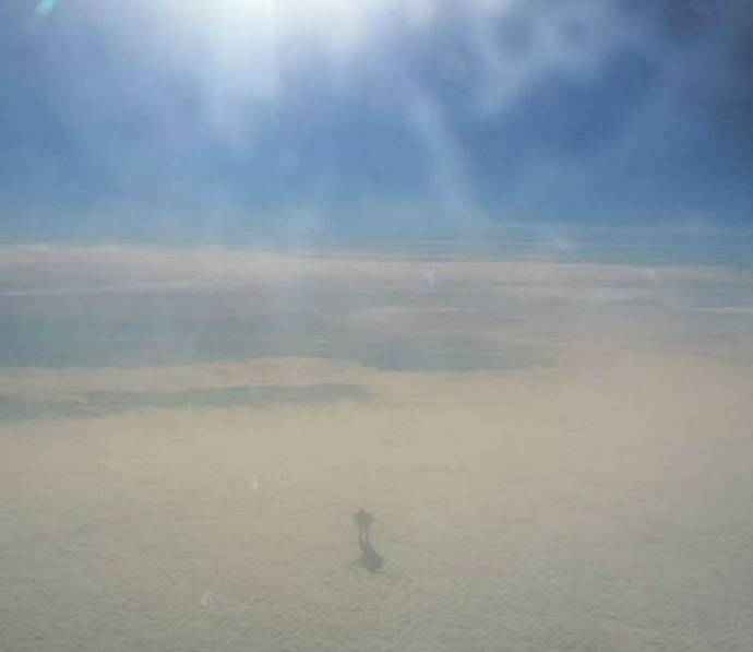 Guardando di nuovo all’oblò, Irishman Stupito: un’enorme figura umanoide camminava tra le nuvole. Certo potrebbe essere qualsiasi cosa, ma per qualche ragione la testa di Nick immediatamente il pensiero venne: un alieno. Quindi si affrettò a prenderlo macchina fotografica e scattare una foto straordinaria.