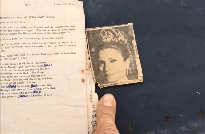 C’erano piume di uccelli, lunghe perle, bottoni, palline, fogli strappati dalla Bibbia, ritagli di vecchie riviste e foto dell’attrice americana un tempo popolare Grace Kelly, sposato nel 1956 con il Principe di Monaco. Anche in banca c’erano diverse note con il nome Philip. Forse è questo il nome il precedente proprietario della cache.