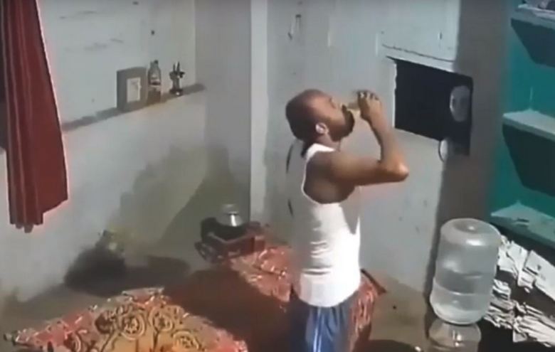 Un uomo si alza, fa qualcosa con un telefono cellulare, piuttosto controlla solo la posta e poi beve acqua. In questo momento, un fantasma guardandolo di nuovo, ma ora nella finestra di visualizzazione che conduce a un’altra stanza. Ma l’uomo non nota nulla all’inizio. E quando alza accidentalmente gli occhi da un bicchiere d’acqua, poi si limita a scivolare dentro lato e, molto probabilmente, cade e poi scappa (la fotocamera non ha potuto cattura tutto nel tuo obiettivo).