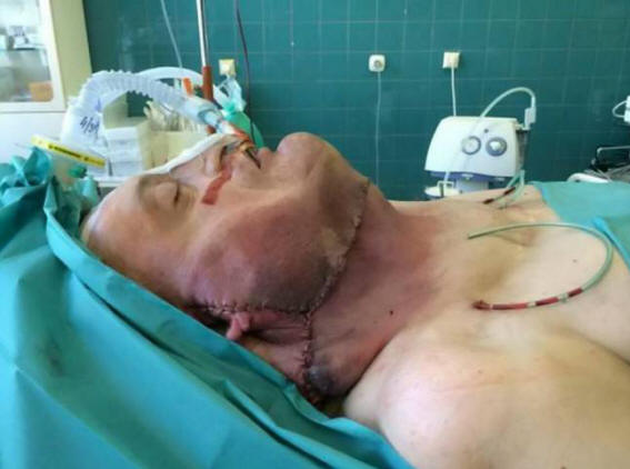 I medici slovacchi del villaggio di Martin hanno rimosso una libbra da 6 sterline gonfiore dalla faccia dell’idraulico locale Stefan Zoleyka. strano l’educazione ha iniziato a crescere sul mento 20 anni fa e da allora quindi costantemente aumentato. A causa di un raro disturbo, un uomo per molti anni non è uscito di casa.