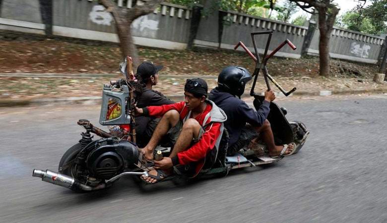 Gli appassionati pendono dalle loro pipe “amici a due ruote” e armatura, balestre, teschi di animali, rami di alberi, mitragliatrice nastro. L’Indonesia ha una tradizione e una vera sottocultura rifacendo Vesp in qualcosa di insolito ed eccezionale. “Rebel Riders” organizzano costantemente festival e gare in tutto il paese.