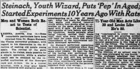In quegli stessi anni, parallelamente a Voronov, gli stessi esperimenti fu impegnato il chirurgo austriaco Eigen Steinach, che trapiantò e ghiandole da persona a persona. La rivista “Red Cornfield” nel 1921 ha descritto la sua pratica in questo modo: